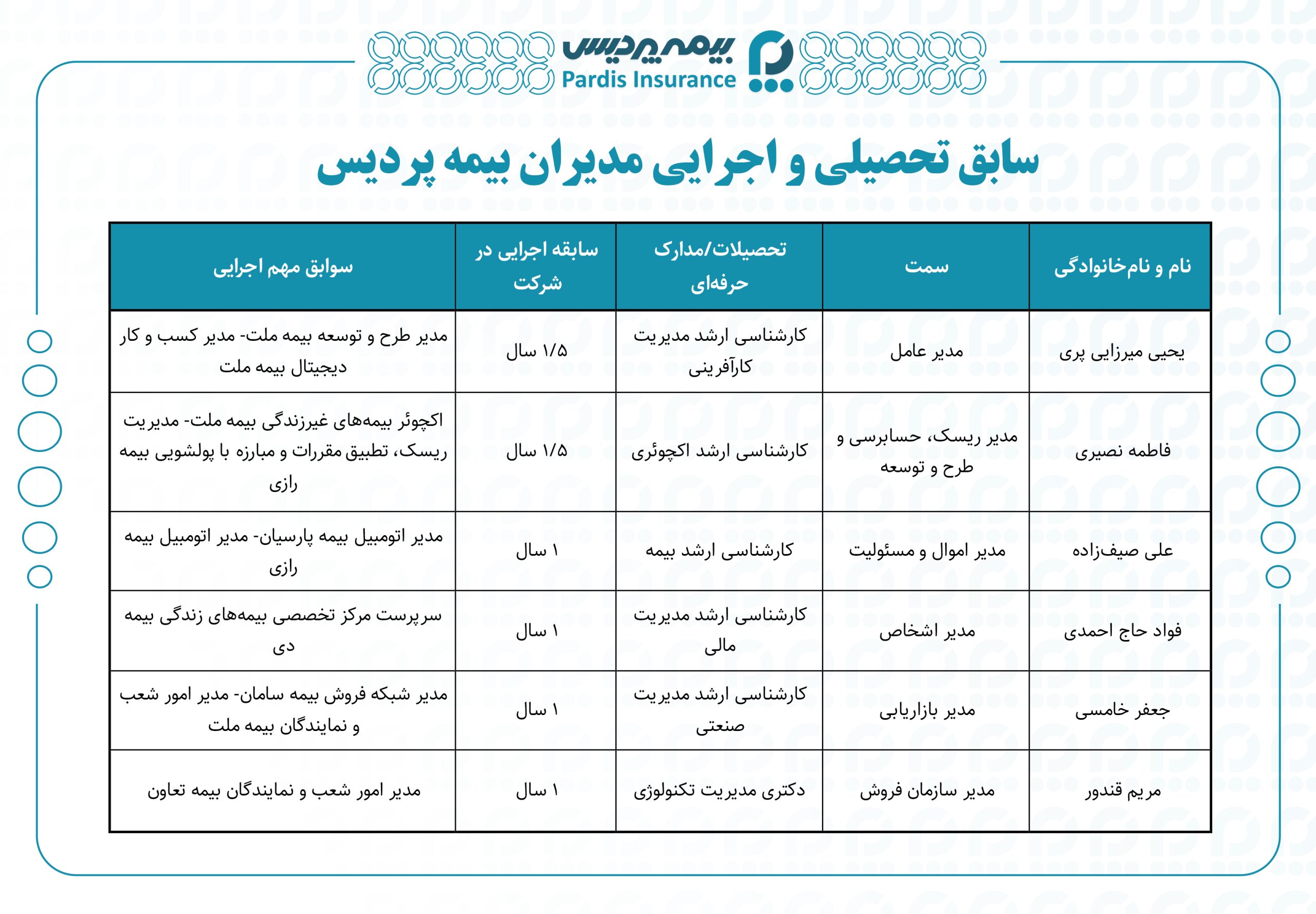 - مشخصات، اطلاعات مدیران بیمه پردیس