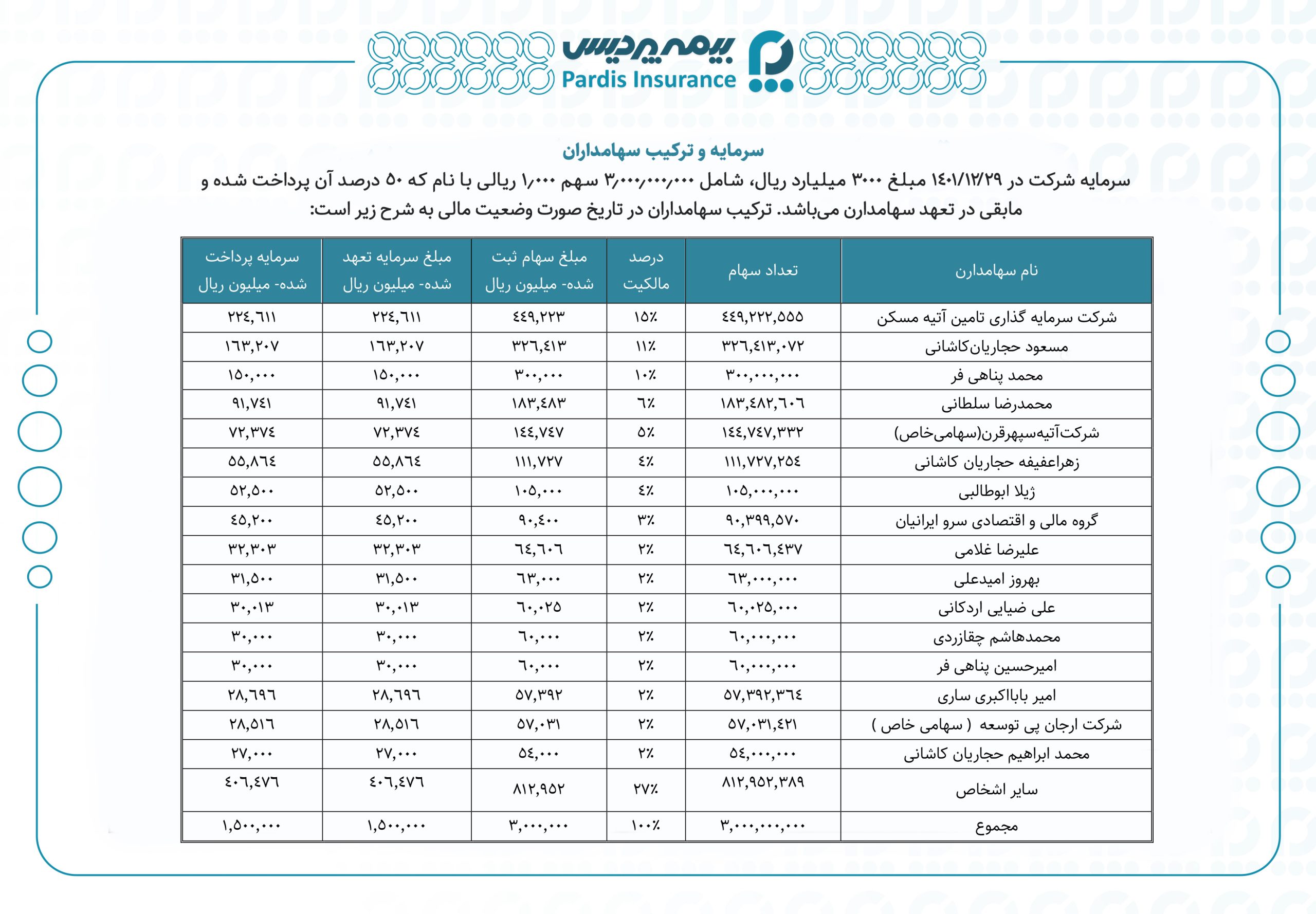 - مشخصات ثبتی و اساسنامه شرکت بیمه پردیس