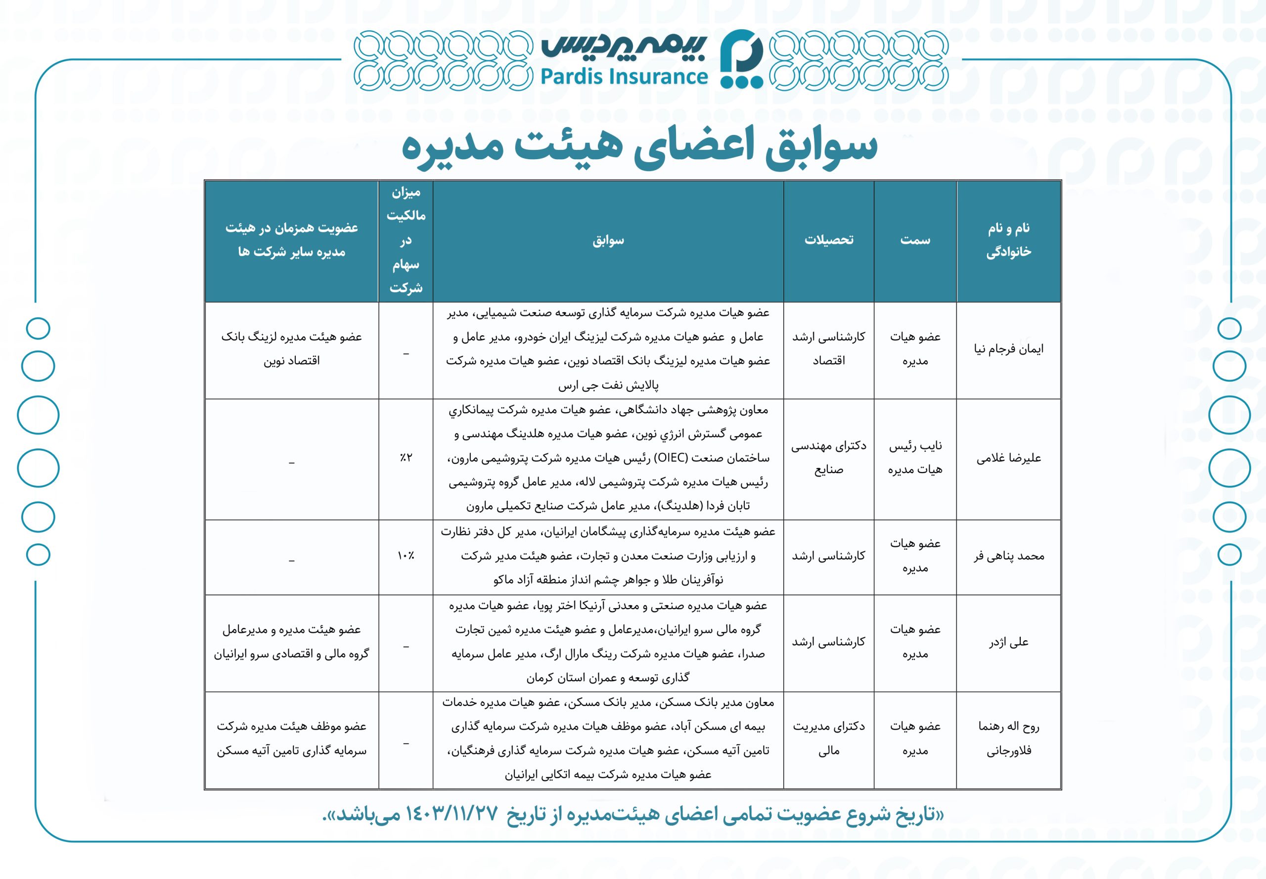 - مشخصات، اطلاعات و سوابق هیئت مدیره